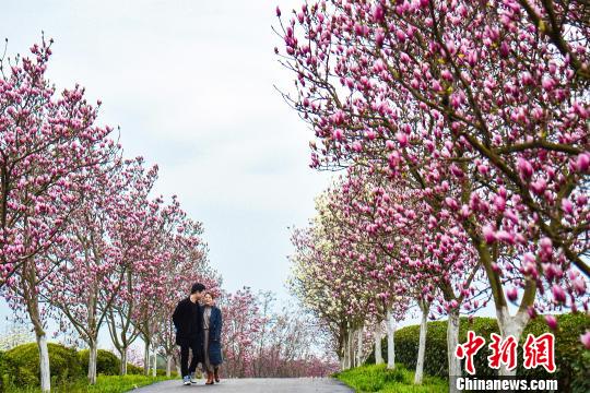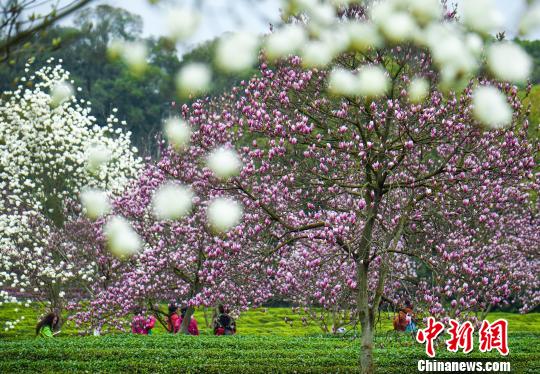 上千株玉兰花成为春天一道绚丽的风景线。 鲍赣生 摄