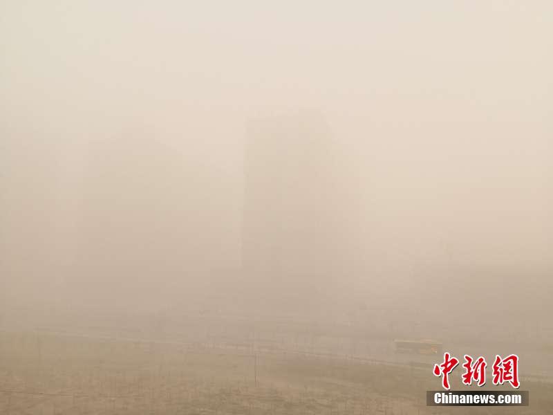 喀什市整个城市被沙尘包围。文/王小军 图/朱亚宵