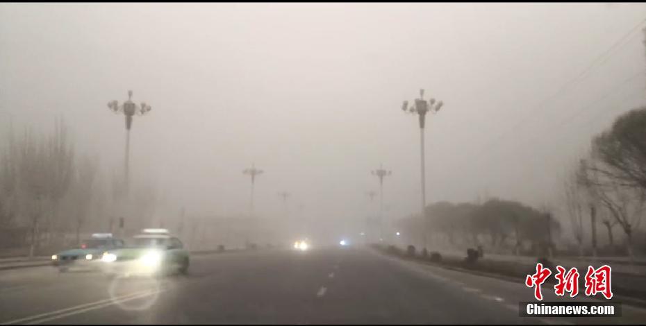 喀什市机动车都打开车灯行驶。文/王小军 图/朱亚宵