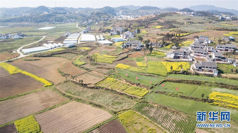 3月21日,毕节市黔西县林泉镇田园风光(无人机拍摄)。当日,贵州省毕节市黔西县天气晴好,田地与山林、民居、道路等构成一幅幅美丽的春日画卷。 新华社记者 陶亮 摄