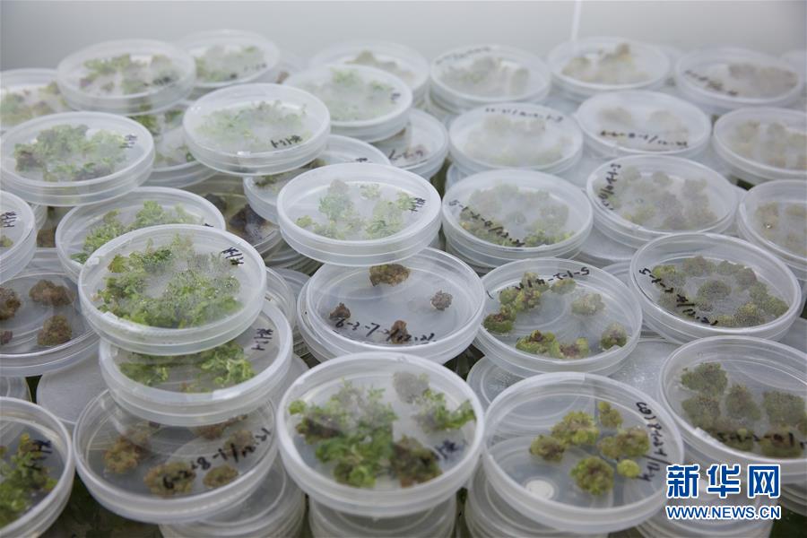 在中科院武汉植物园国家猕猴桃种质资源圃组织培养室摆放的猕猴桃愈伤组织再生芽(3月21日摄)。 中科院武汉植物园国家猕猴桃种质资源圃收集保存有61个种或变种的猕猴桃属植物,包含110余个栽培品种、3万余株种内种间杂交群体,在资源收集数量和保存规模上是目前国内外该属植物遗传多样性涵盖量最大、种质资源最丰富的基因库。 新华社记者 金立旺 摄