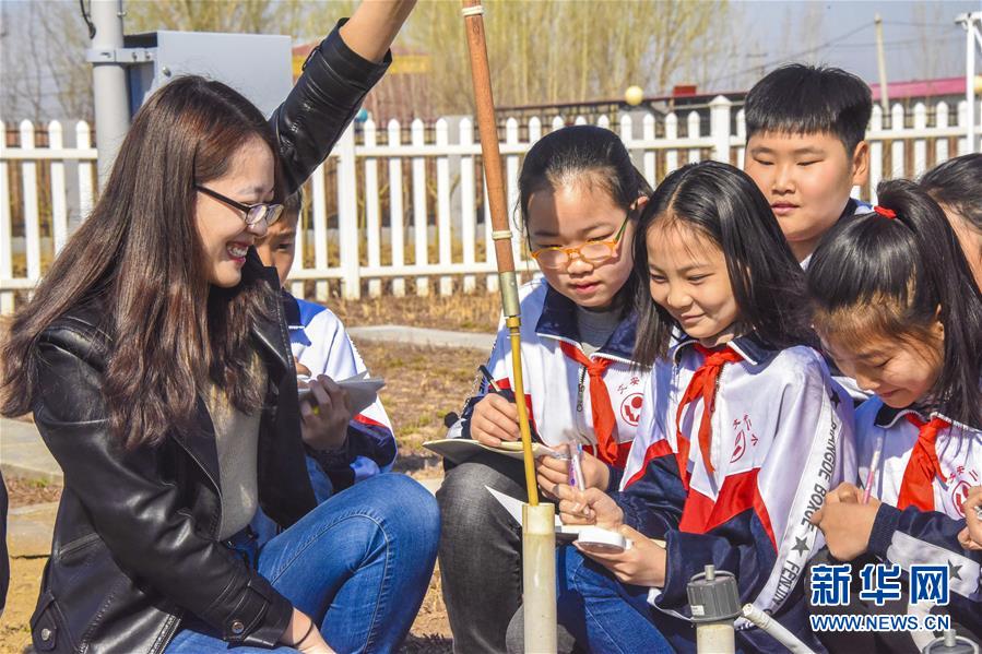 3月22日,在文安县气象局,技术人员为小学生讲解如何测量冻土。 当日,河北文安县科协组织文安县第二小学学生到该县气象局,实地学习气象科普知识,迎接即将到来的世界气象日。 新华社记者李晓果摄