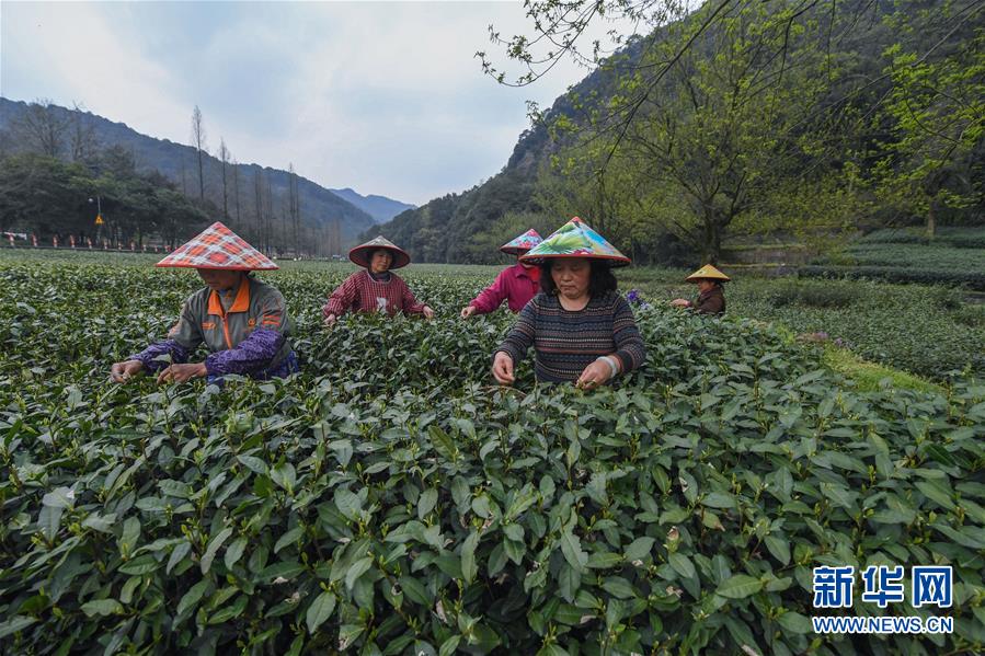 3月25日,杭州梅家坞村的茶农在采摘西湖龙井“明前茶”。3月下旬,浙江杭州西湖龙井茶一级保护区里的梅家坞村、龙井村、翁家山村等产茶区的茶农开始大面积采摘西湖龙井“明前茶”。据当地茶农介绍,由于今年春季雨水偏多,气温起伏较大,今年西湖龙井新茶的采摘期比去年略晚。新华社记者 徐昱 摄