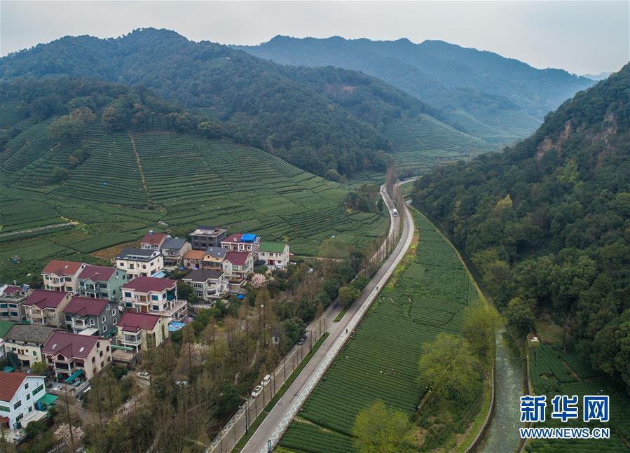 3月25日,空中俯瞰杭州梅家坞村的茶园(无人机拍摄)。3月下旬,浙江杭州西湖龙井茶一级保护区里的梅家坞村、龙井村、翁家山村等产茶区的茶农开始大面积采摘西湖龙井“明前茶”。据当地茶农介绍,由于今年春季雨水偏多,气温起伏较大,今年西湖龙井新茶的采摘期比去年略晚。新华社记者 徐昱 摄