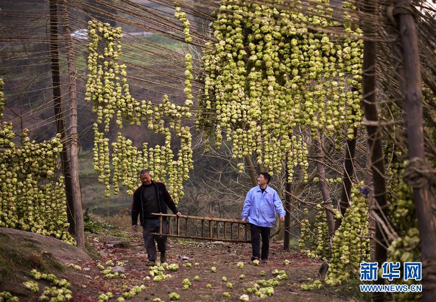 工人在重庆市涪陵区马武镇某榨菜企业的晾晒场上工作(2月21日摄)。新华社记者 兰红光 摄