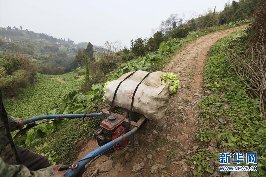 在重庆市涪陵区百胜镇广福村,当地村民在运送采收的青菜头(2月21日摄)。新华社记者 兰红光 摄