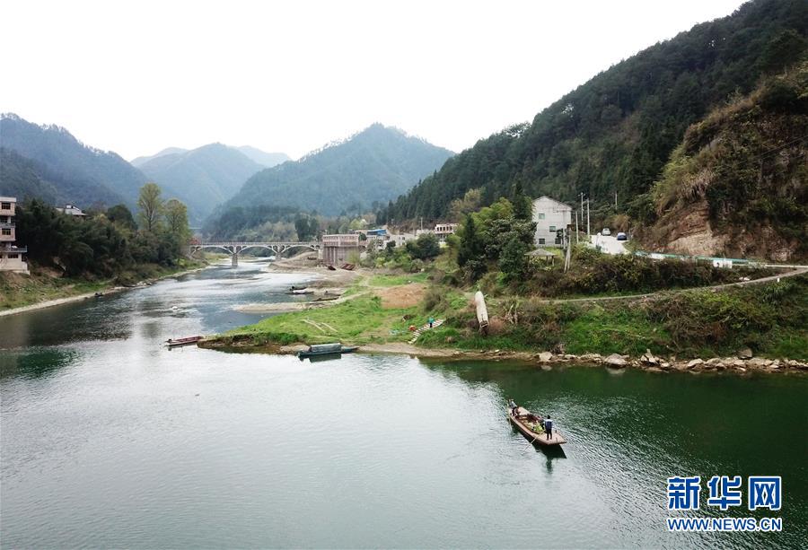 3月24日,苗族妇女们用小船运蔬菜过江(无人机拍摄)。 新华社记者 杨文斌 摄