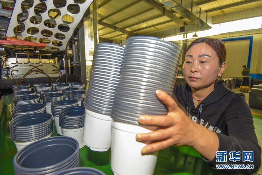 3月27日,在一家从雄安新区外迁到河北省故城县的塑胶包装企业,工人在对塑胶花盆底部进行打孔。 近年来,河北省故城县围绕承接雄安新区产业外溢,借势协同发展,鼓励落户到故城的企业向高端、智能、绿色转型升级,着力打造绿色环保新材料产业基地。 新华社记者李晓果摄