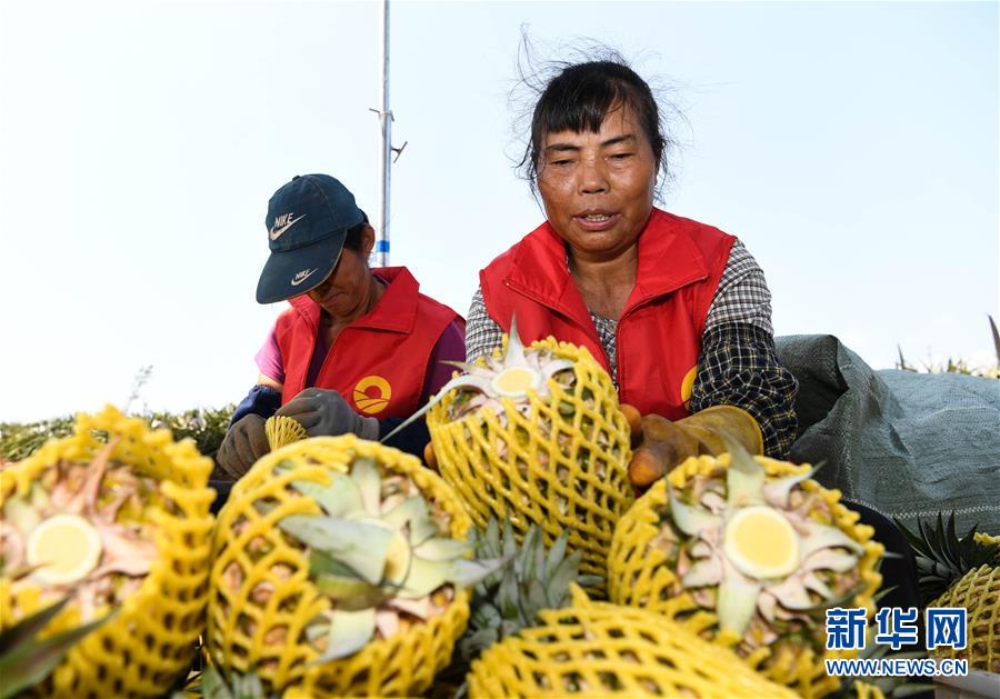 3月28日,广东农垦徐闻红星农场职工在优选菠萝。 近日,广东省湛江市徐闻县的菠萝种植农场迎来今年的首批采摘。徐闻县是菠萝生产大县,种植面积约30万亩,被称为“菠萝的海”。 新华社记者 邓华 摄