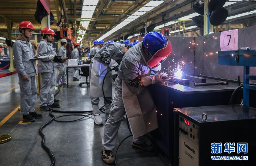3月29日,技术工人在参加电焊技能比赛。 当日,浙江省杭州市临安区总工会组织的汽车技工技能“大比武”在临安区易辰汽车公司厂区内举行,竞赛内容包括叉车技能、机械臂技能以及电焊技能等。本次活动也拉开了2019年临安区“百千万”(百家企业参与、发现千名优秀员工、万名职工参加)劳动竞赛的帷幕。 新华社记者 徐昱 摄