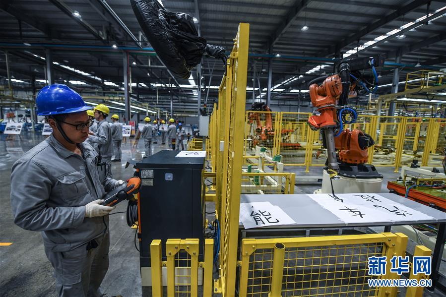 3月29日,技术工人在机械臂技能比赛中操作机械臂写毛笔字。 当日,浙江省杭州市临安区总工会组织的汽车技工技能“大比武”在临安区易辰汽车公司厂区内举行,竞赛内容包括叉车技能、机械臂技能以及电焊技能等。本次活动也拉开了2019年临安区“百千万”(百家企业参与、发现千名优秀员工、万名职工参加)劳动竞赛的帷幕。 新华社记者 徐昱 摄