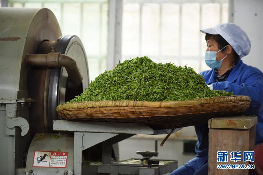 3月31日,制茶工人在贵州省余庆县松烟镇一家茶叶加工厂赶制“明前茶”。随着气温回升,贵州省遵义市余庆县各大茶场迎来“明前茶”采摘高峰。采茶工人忙着采摘、制茶,供应市场。新华社记者 杨文斌 摄