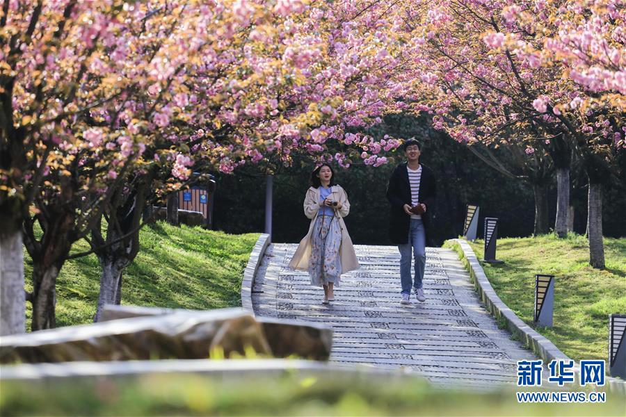 3月31日,游人在江西九江濂溪区南山公园的樱花园内赏花。 新华社发(张海岩 摄)