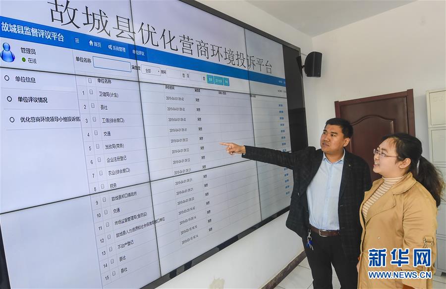 4月1日,在河北省故城县纪委监委,工作人员通过优化营商环境投诉平台查看群众监督情况。 新华社记者 李晓果 摄