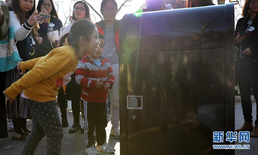 当日,具备人机交互功能的移动回收站“小推”正式亮相上海迪士尼乐园。“小推”可以自行移动并向游客介绍垃圾分类知识,吸引众多小朋友参与互动。4月是上海迪士尼的“地球月”,园区将全面倡导废弃物分类理念,提高游客和工作人员的环保意识。 新华社记者方喆摄