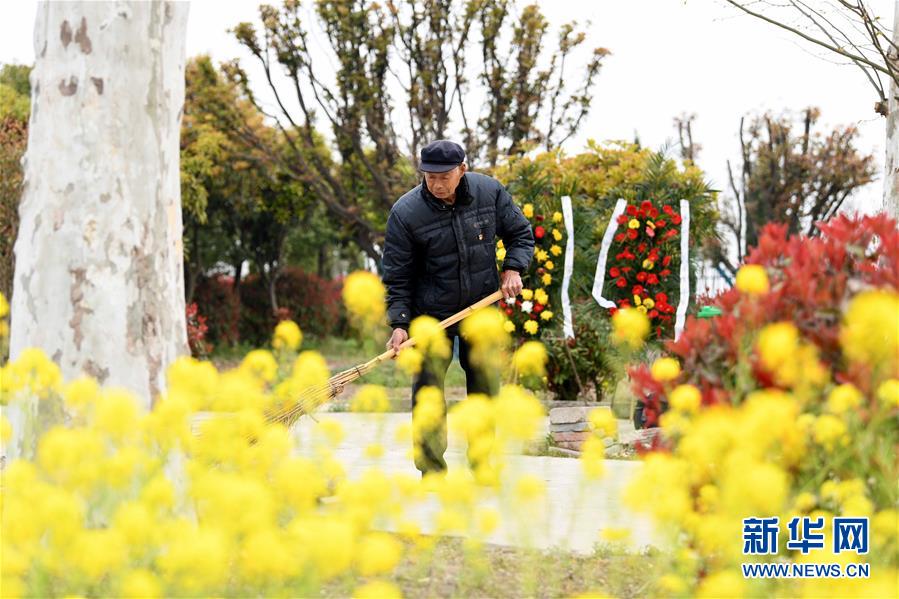 4月2日,胡兆伦在烈士陵园里打扫卫生。 新华社记者刘军喜摄