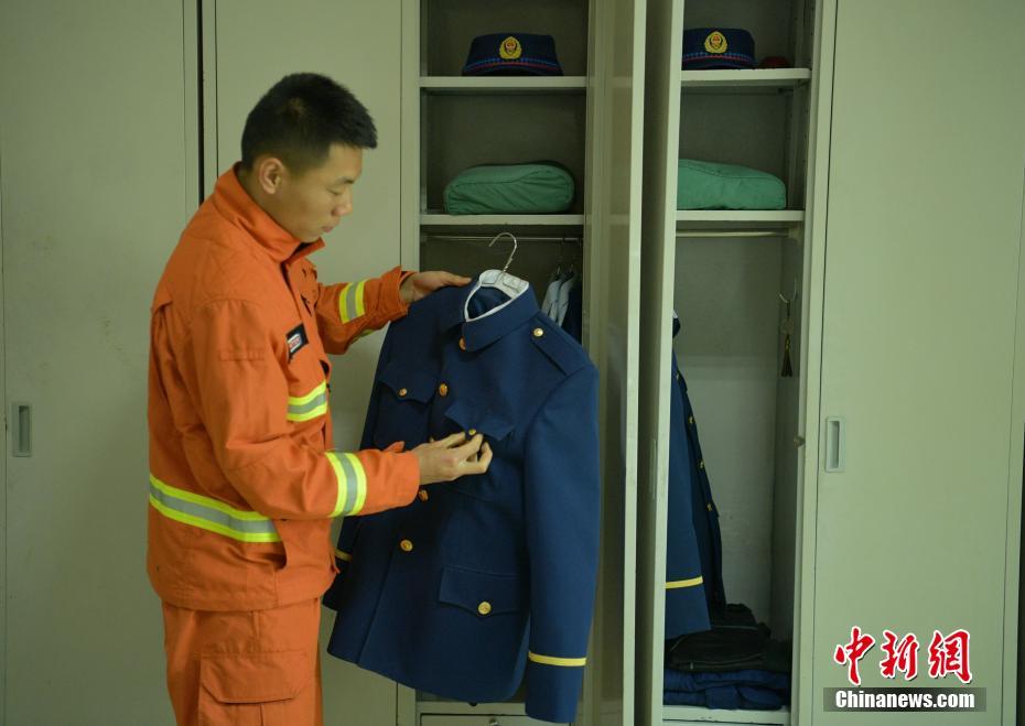 4月3日,四川西昌,消防员整理牺牲队友的衣柜。凉山州森林消防支队西昌大队宿舍里依旧是队员们奔赴火场前的模样,只是十分清静。四川凉山州木里县雅砻江镇立尔村3月30日发生森林火灾。3月31日下午,四川森林消防总队凉山州支队指战员在扑火行动中,受风力风向突变影响,突发林火爆燃,大火带走了27名森林消防员的生命,其中西昌大队就有26名。中新社记者 刘忠俊 摄