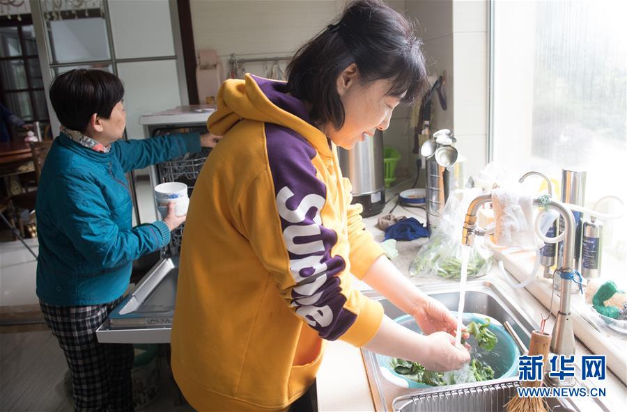 58岁的陈姮(前)和71岁的王荷花在厨房洗碗洗菜(3月29日摄)。 在杭州余杭区瓶窑镇港东村一栋小别墅里,有十多位“抱团养老”的老人,每天一起逛街买菜、跳舞、打麻将,如同多年老友。 “我们几位老人自愿结伴,抱团养老。”“抱团养老”发起人朱荣林说,2017年他通过报纸发布招募信息,邀请志同道合的老人到自家别墅抱团养老,每人每月支付千余元的费用,尝试共同生活的模式。他的目的只是想让大家晚年生活不孤独,有问题也可以相互照应。 近两年过去,养老团的成员有进有出,陆陆续续换了四五户家庭。朱荣林说他和团员们通过“抱团养老”感到了充实和快乐。 新华社记者翁忻旸摄