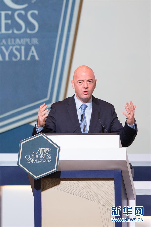 因凡蒂诺在亚足联代表大会上致辞。新华社记者朱炜摄