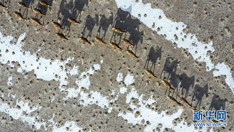 阿尔金山国家级自然保护区内的藏野驴(4月2日无人机拍摄)。 新华社记者 胡虎虎 摄