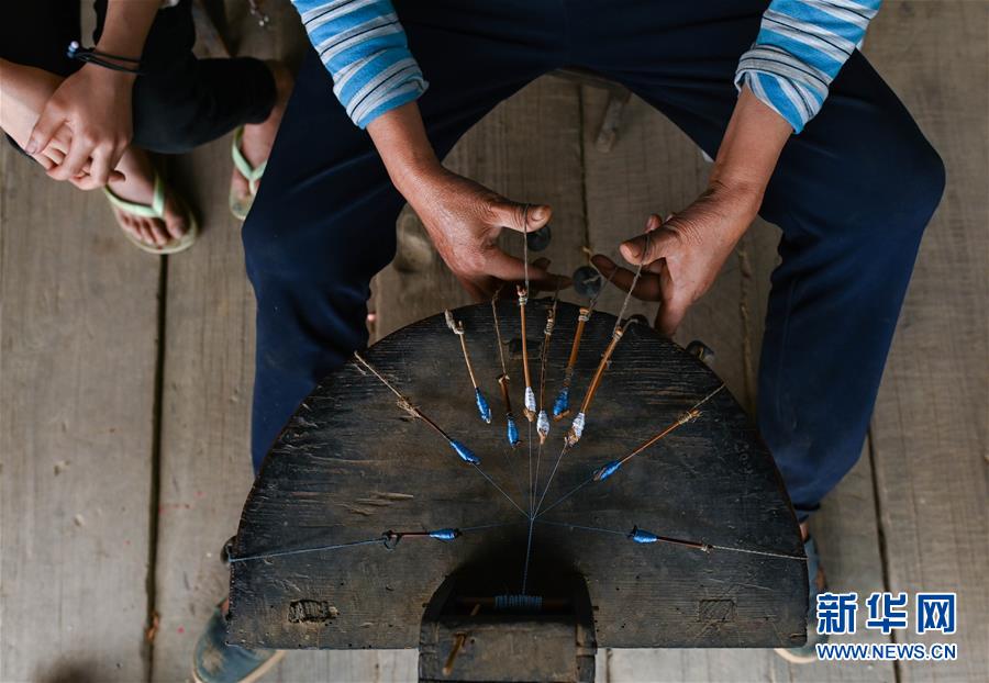 4月6日,板江村村民李中利用传统工艺编服饰的花边。云南省文山州广南县板江村是一座有数百年历史的村落,被列入中国传统村落名录。一直以来,由于该村深居山区,交通不便,脱贫任务艰巨。2017年,村里引入民宿、文创和旅游相结合的新型文旅项目,将当地传统村落的建筑载体、日常习俗、节日庆典、手工技艺等活态文化,转化为优质的文化产品,成为助力乡村脱贫致富的新探索。 新华社记者 江宏景摄