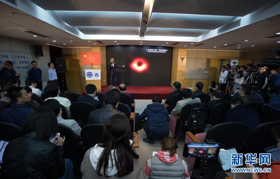 4月10日,在中国科学院上海天文台举行的新闻发布会上,中方团队成员在回答记者提问。 新华社记者 金立旺 摄