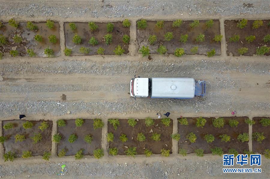 这是在张掖市甘州区拍摄的黑河生态带新栽植苗木(4月11日无人机拍摄)。2018年以来,甘肃省张掖市抓住祁连山国家公园体制试点机遇,全面启动实施总规模200万亩的“一园三带”造林绿化示范建设工程,该工程计划利用三年时间,完成祁连山国家公园生态修复150万亩、黑河生态带20万亩、交通大林带20万亩、城市绿化带10万亩。 新华社记者 范培珅 摄