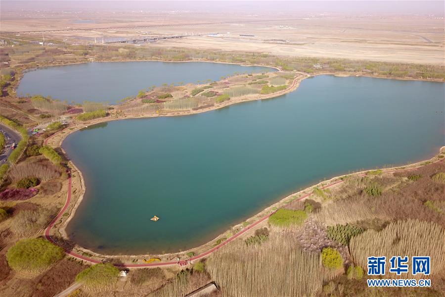 这是在张掖市甘州区拍摄的黑河生态带(4月12日无人机拍摄)。2018年以来,甘肃省张掖市抓住祁连山国家公园体制试点机遇,全面启动实施总规模200万亩的“一园三带”造林绿化示范建设工程,该工程计划利用三年时间,完成祁连山国家公园生态修复150万亩、黑河生态带20万亩、交通大林带20万亩、城市绿化带10万亩。 新华社记者 范培珅 摄