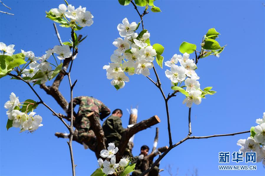 4月14日,河北省迁西县洒河桥镇道马寨村栗农在进行板栗树嫁接。 新华社发(李少华 摄)