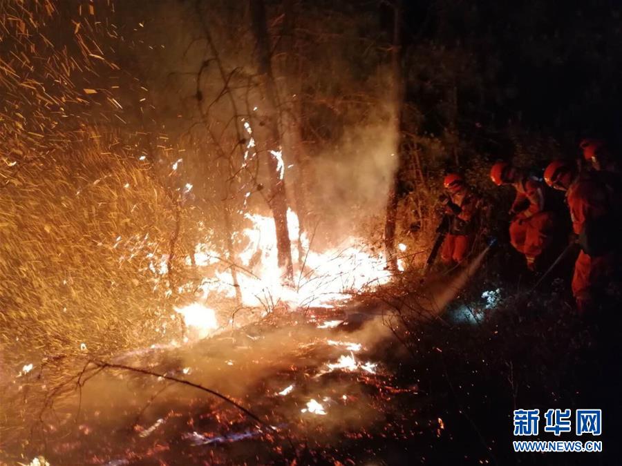 4月19日,森林消防官兵在扑火。当日18时许,云南省昆明市五华区龙池山地区发生森林火灾,森林消防部门已出动150人前往火场扑救。图片来源:新华网