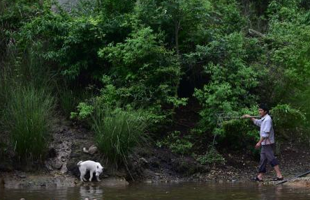 4月21日,今年35岁的杨兴桥,是贵州省黔东南苗族侗族自治州丹寨县兴仁镇的蛋鸭养殖户。图为杨兴桥(前)将蛋鸭当天所产的鸭蛋挑运回家。 杨武魁 摄