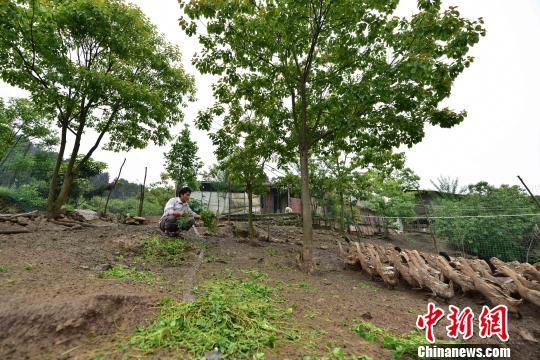 图为杨兴桥在鸭圈里喂养蛋鸭。 杨武魁 摄