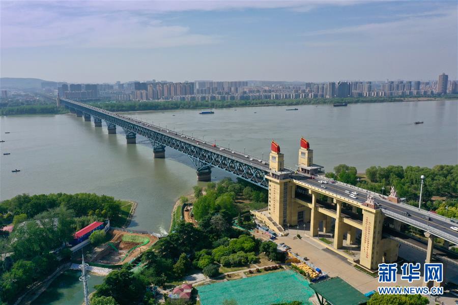 这是4月18日无人机拍摄的南京长江大桥。 新华社记者 李博 摄