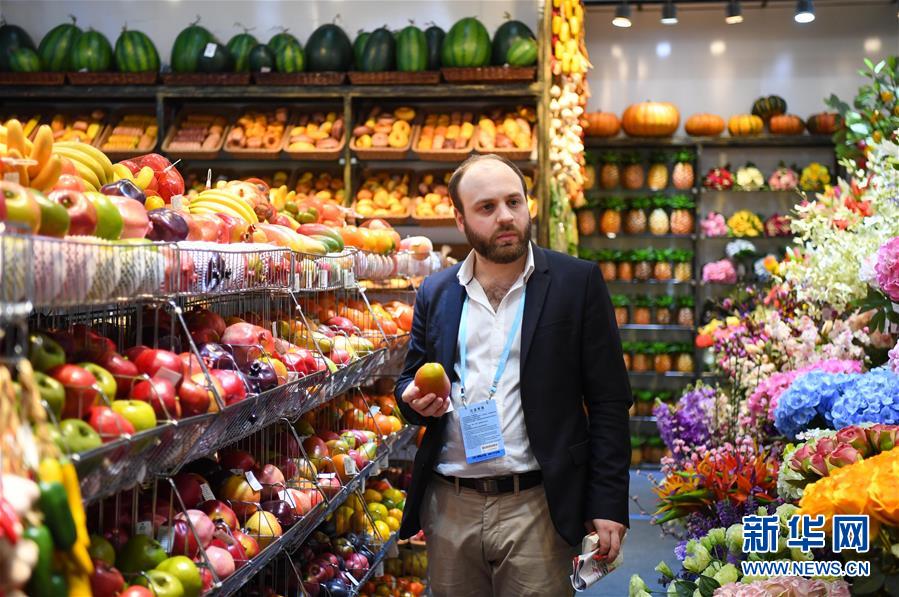 4月23日,外国采购商在家居饰品展区观看展品。 当日,第125届中国进出口商品交易会(广交会)第二期在广州琶洲会展中心开幕。本期展会将持续至4月27日,主要展出日用消费品、礼品、家居装饰品等。 新华社记者 邓华 摄