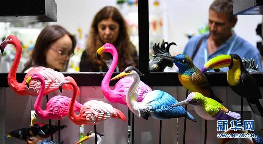 4月23日,在家居饰品展区,外国采购商和参展商在洽谈。 当日,第125届中国进出口商品交易会(广交会)第二期在广州琶洲会展中心开幕。本期展会将持续至4月27日,主要展出日用消费品、礼品、家居装饰品等。 新华社记者 邓华 摄