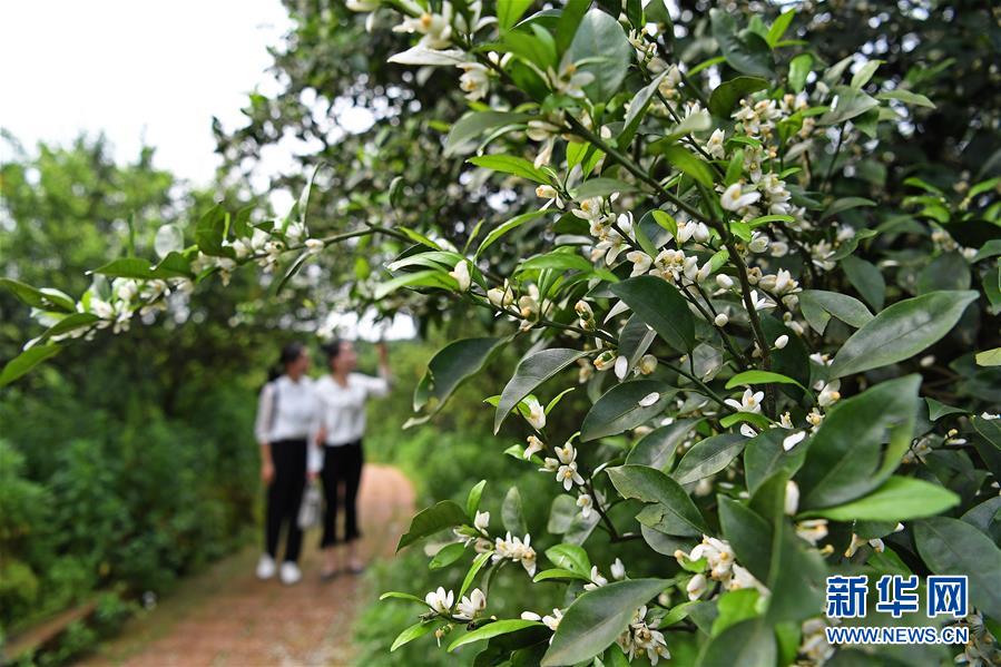 游客在江西省南丰县琴城镇杨梅村的桔园里观赏桔花(4月23日摄)。 近年来,江西省南丰县依托本地70万亩蜜桔园,重点打造桔文化旅游产业,推进观必上蜜桔乐园、水南国礼园等30多个“桔园游”示范园项目,初步形成了“春赏花、夏避暑、秋摘桔、冬泡泉”的四季游产品。据统计,2018年南丰县旅游接待人次达432.3万,同比增长10.28%。 新华社记者 万象 摄