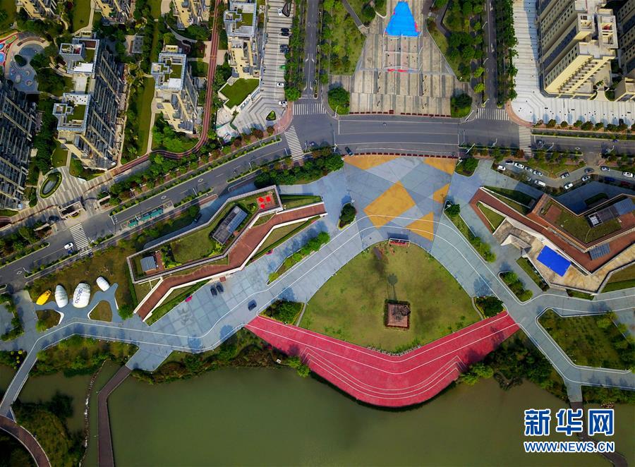 这是无人机航拍的福州飞凤山智能公园局部(4月24日摄)。 近日,福州飞凤山智能公园在福州市仓山区开园,该公园实现5G信号全覆盖,是福州市首个自动驾驶车智能园区。 新华社记者魏培全摄