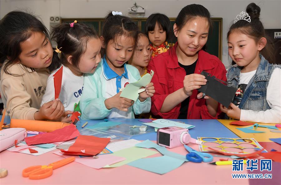 陕西省延安市杨家岭福州希望小学美术社团的学生在进行剪纸(4月24日摄)。 近年来,陕西省延安市杨家岭福州希望小学把开展特色社团活动作为推进学生素质教育的重要举措。学校根据学生的兴趣爱好和特长,组建了书法、足球、合唱等多个社团,配备专业辅导老师,每周开展丰富多彩的社团活动,丰富学生的校园生活。 新华社记者 刘潇摄