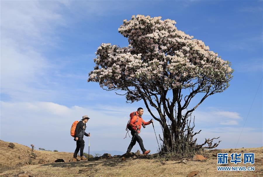 4月23日,户外爱好者经过龙头山野生杜鹃花。 近日,四川省攀枝花市盐边县龙头山十余万亩野生杜鹃花盛开,吸引省内外游客前来登山赏花。 龙头山位于四川省攀枝花市盐边县北部的红宝苗族彝族乡境内,这里的野生杜鹃花花期为2月至5月。 新华社记者 江宏景 摄