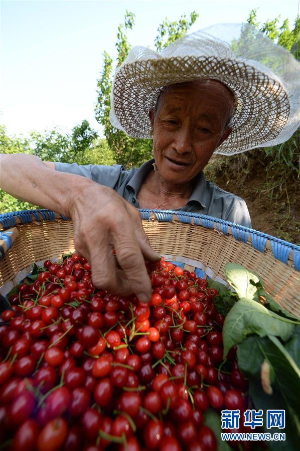 4月26日,村民在大方县对江镇营兴村樱桃园里整理采摘的樱桃。 近日,贵州省毕节市大方县对江镇营兴村的500余亩樱桃成熟,进入最佳采摘期。 近年来,大方县因地制宜引导农民利用荒山发展樱桃等经果林的种植,既起到了保土、保水的作用,又推动了当地种植业的发展。 新华社记者 杨楹 摄