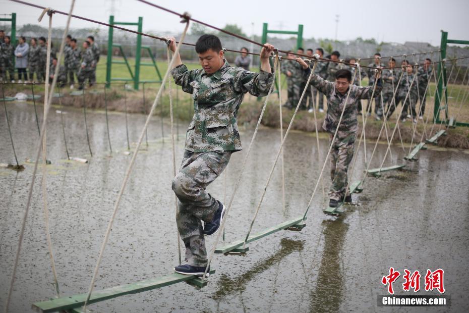 4月27日,年轻人在南京开展“初露锋芒”、“铁血营救”、“支援前线”军事拓展任务。当日,来自中建安装的青年们齐聚一堂,通过听退伍老兵讲故事、25公里拉练等活动重温艰苦奋斗历史,同时开展各项军事拓展训练提升执行力、凝聚力和创造力。 中新社记者 泱波 摄