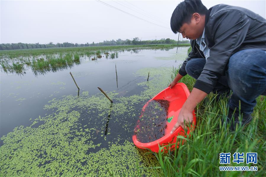 4月28日,刘伟把小龙虾苗放入稻田里。刘伟大学毕业后回乡承包了80亩稻田,在水稻田里饲养小龙虾,进行稻虾共养的生态养殖。近年来,浙江省长兴县林城镇团委积极推进青年大学生返乡创业,并提供多项政策支持,让成功创业的青年作为带头人带动家乡的年轻人投身种蜂培育、稻虾共养、有机蓝莓种植等新型农业,为建设家乡贡献力量。 新华社记者 徐昱 摄