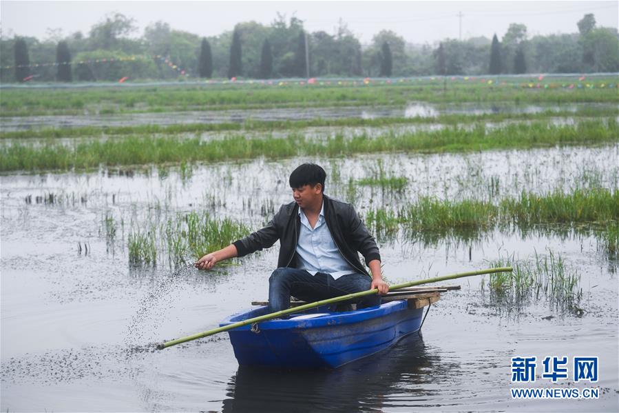 4月28日,刘伟在稻田里给龙虾投食。刘伟大学毕业后回乡承包了80亩稻田,在水稻田里饲养小龙虾,进行稻虾共养的生态养殖。近年来,浙江省长兴县林城镇团委积极推进青年大学生返乡创业,并提供多项政策支持,让成功创业的青年作为带头人带动家乡的年轻人投身种蜂培育、稻虾共养、有机蓝莓种植等新型农业,为建设家乡贡献力量。 新华社记者 徐昱 摄