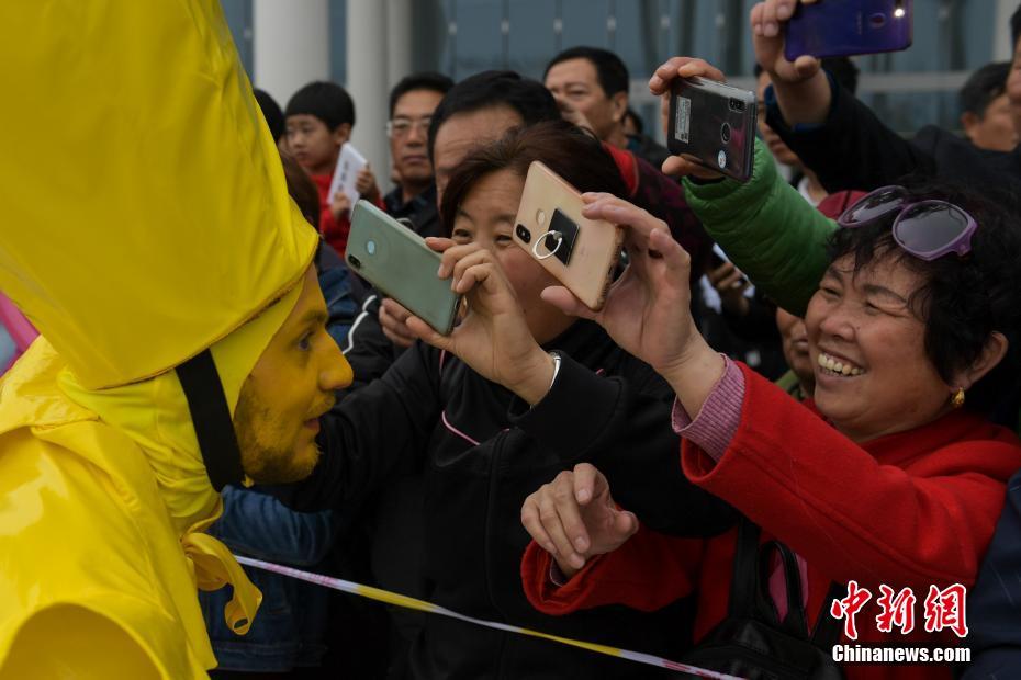 4月29日,2019年中国北京世界园艺博览会(简称北京世园会)正式对公众开放。图为一名演员在国际风采嘉年华活动中与观众互动。中新社记者 崔楠 摄