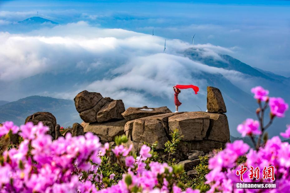 在奇石和云海的衬托下,盛放的杜鹃花展现出别样的生命姿态。 李小明 摄