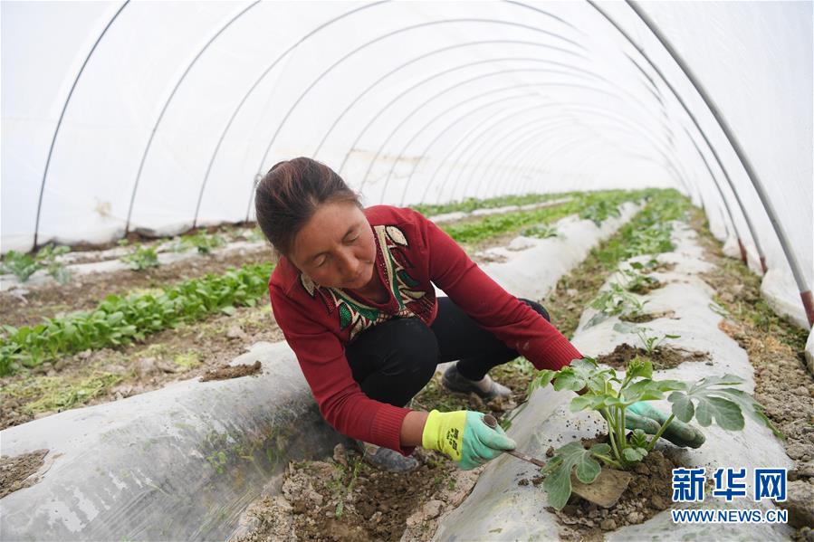 4月29日,玉斯屯克塔勒克村村民阿依木古丽·吐尕尼亚孜在温室大棚内忙碌。 2018年以来,新疆阿瓦提县拜什艾日克镇玉斯屯克塔勒克村积极挖掘种植业潜力,种植拱棚茄子、膜下黄萝卜、拱棚黑木耳等,助力58户、112人脱贫增收。 新华社记者 沙达提 摄