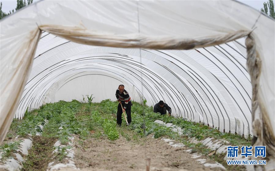 4月29日,玉斯屯克塔勒克村村民在温室大棚内忙碌。 2018年以来,新疆阿瓦提县拜什艾日克镇玉斯屯克塔勒克村积极挖掘种植业潜力,种植拱棚茄子、膜下黄萝卜、拱棚黑木耳等,助力58户、112人脱贫增收。 新华社记者 沙达提 摄