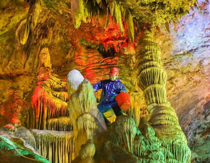 河南洛阳:亿年钟乳石“洗面”保养迎五一