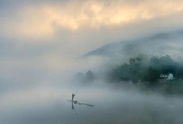 安徽泾县桃花潭畔云雾景观宛如仙境