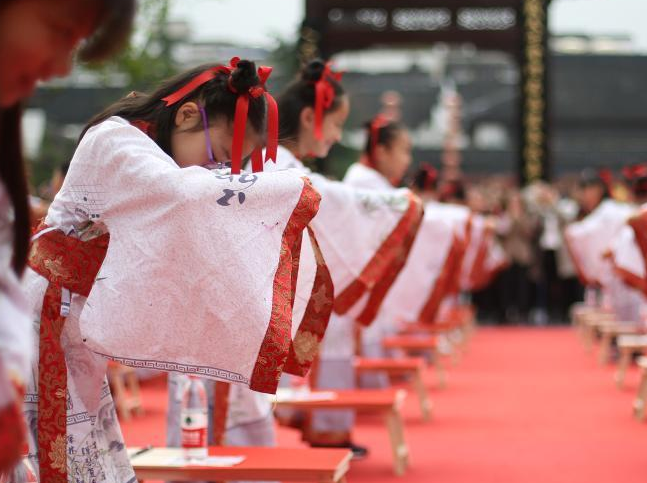 南京小学生着汉服习礼仪感悟“十岁成长礼”